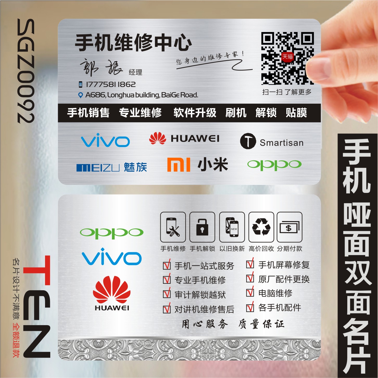 文具电教/文化用品/商务用品 PVC塑料双面手机店通讯数码电脑家电维修名片免费设计制作包邮SGZ