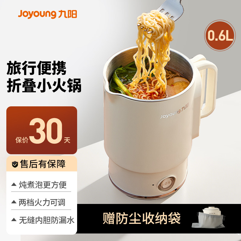 厨房电器 九阳便携式电火锅折叠火锅旅行出差电煮锅恒温不锈钢电热水壶迷你