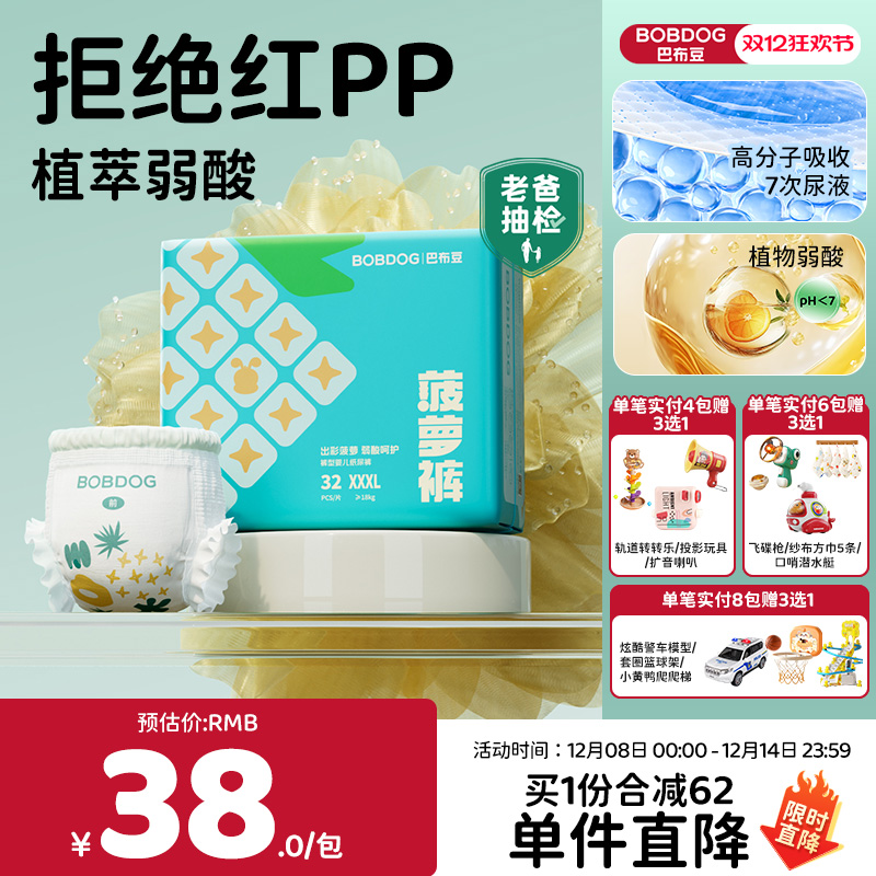 婴童尿裤 【老爸抽检】巴布豆菠萝裤拉拉裤纸尿裤弱酸亲肤透气婴儿尿不湿