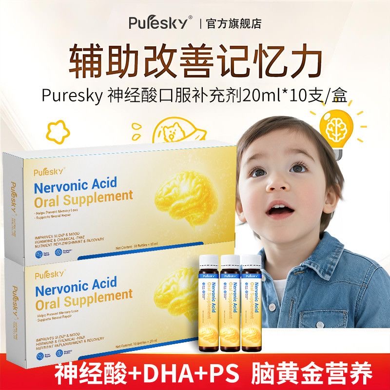 保健食品/膳食营养补充食品 Puresky神经酸学生儿童DHA脑力记忆力磷脂酰丝氨酸10瓶/盒官方