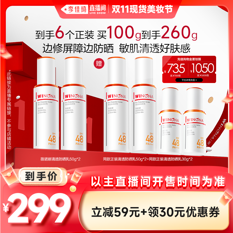 美容护肤/美体/精油 【李佳琦直播间现货美妆节】薇诺娜清透防晒乳官方正品