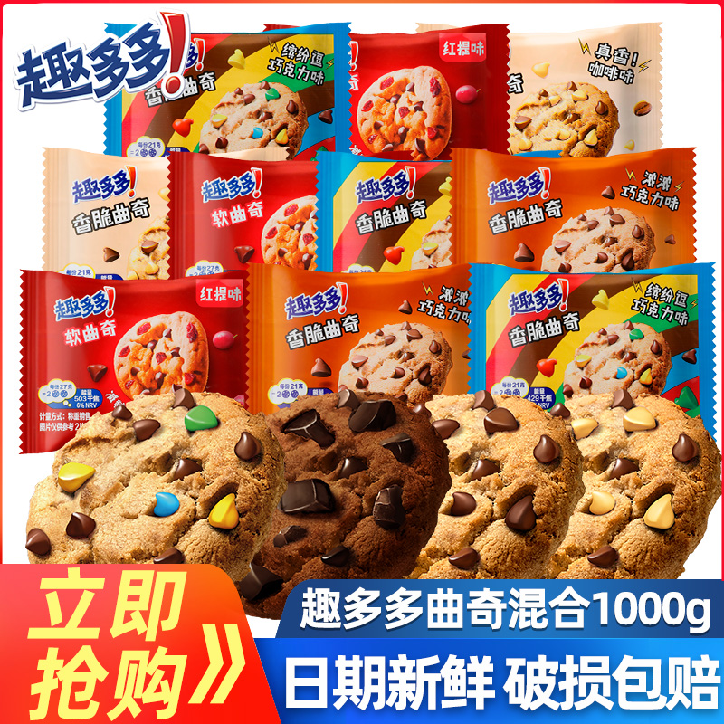 零食/坚果/特产 趣多多巧克力曲奇饼干2斤混合香脆曲奇散装多口味办公室儿童零食
