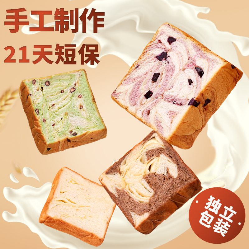 零食/坚果/特产 舒赞手工牛乳巧克力紫薯厚切吐司手撕面包整箱早餐三明治营养零食
