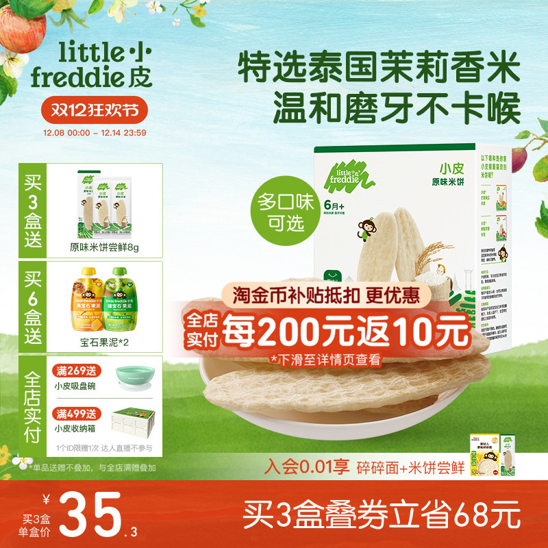 婴童食品 小皮婴儿米饼磨牙棒原味宝宝饼干营养无添加糖盐婴儿零食6个月