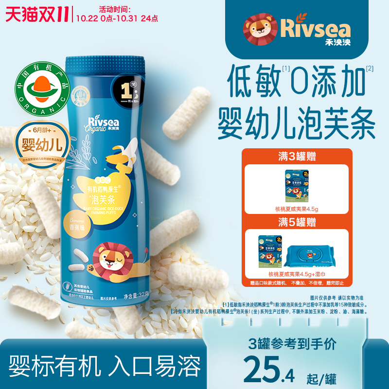 婴童食品 禾泱泱有机婴儿手指泡芙条 宝宝零食儿童手指泡芙辅食6个月+