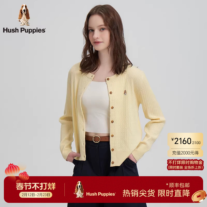 女装/女士精品 【含羊毛】暇步士女装针织开衫2026年春季经典款圆领绞花针织毛衣