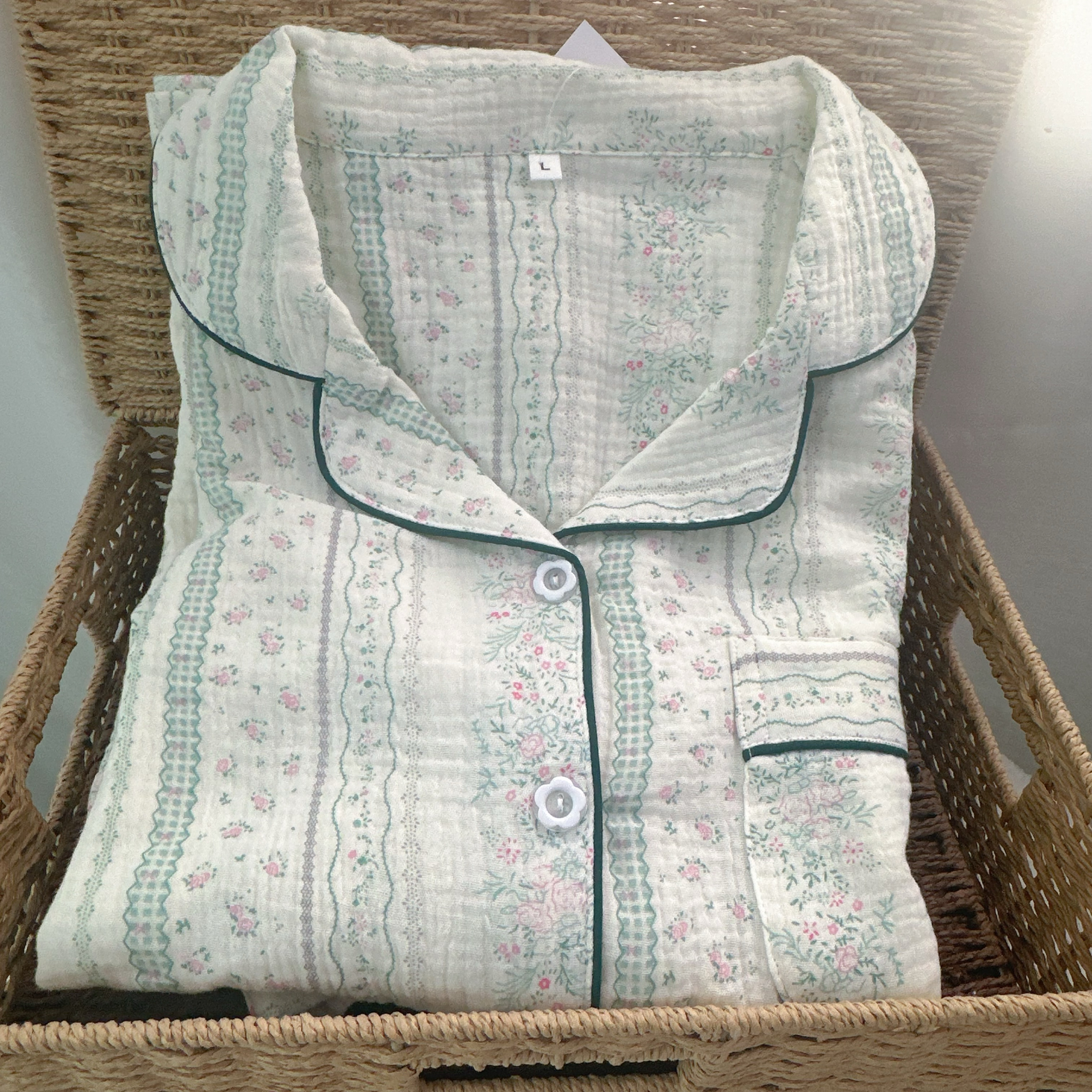女士内衣/男士内衣/家居服 清新女款纯棉绉布双层纱布长袖长裤睡衣套装