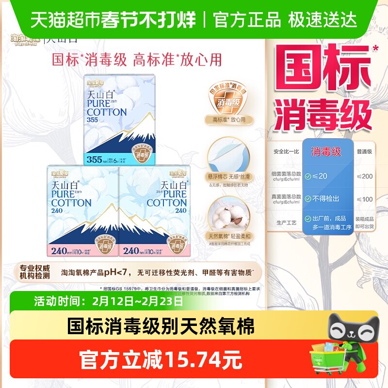 洗护清洁剂/卫生巾/纸/香薰 【杨紫同款】淘淘氧棉天山白消毒级纯棉卫生巾日夜组合超薄
