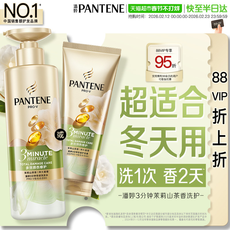美发护发/假发 潘婷三分钟茉莉山茶花香洗发水露护发素女发膜级洗护套装修护柔顺