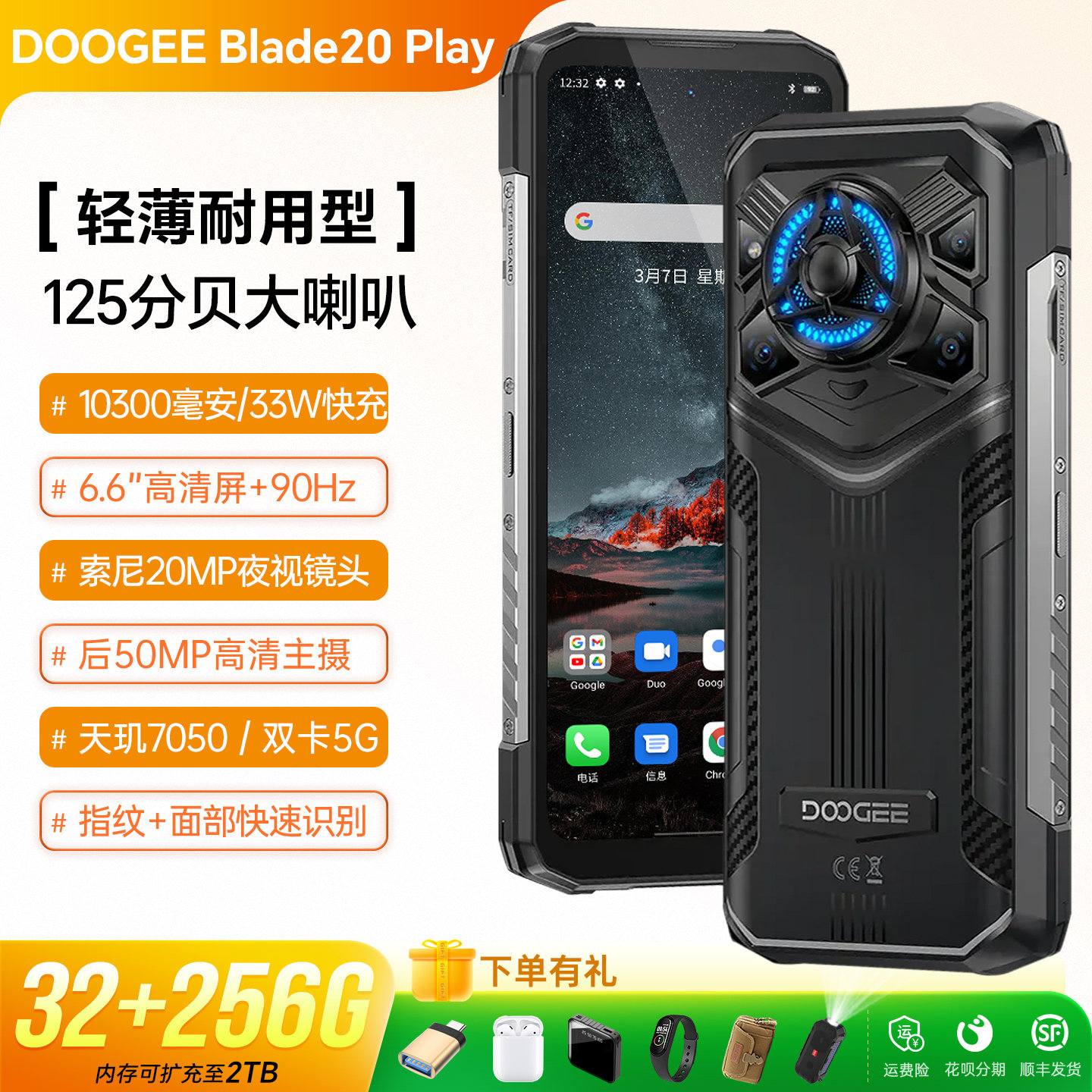 手机 大音量三防智能手机5G防水防摔安卓大屏超长待机道格Blade20 Play