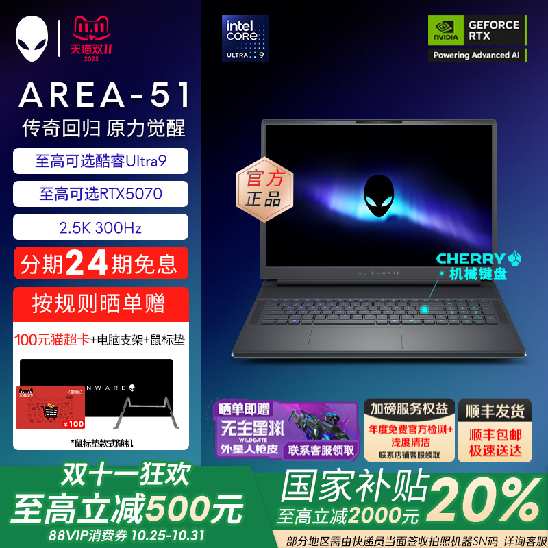 笔记本电脑 【政府补贴20%】外星人(Alienware)18英寸 AREA-51 电竞游戏本外星人笔记本 至高可选 Ultra9 RTX5070
