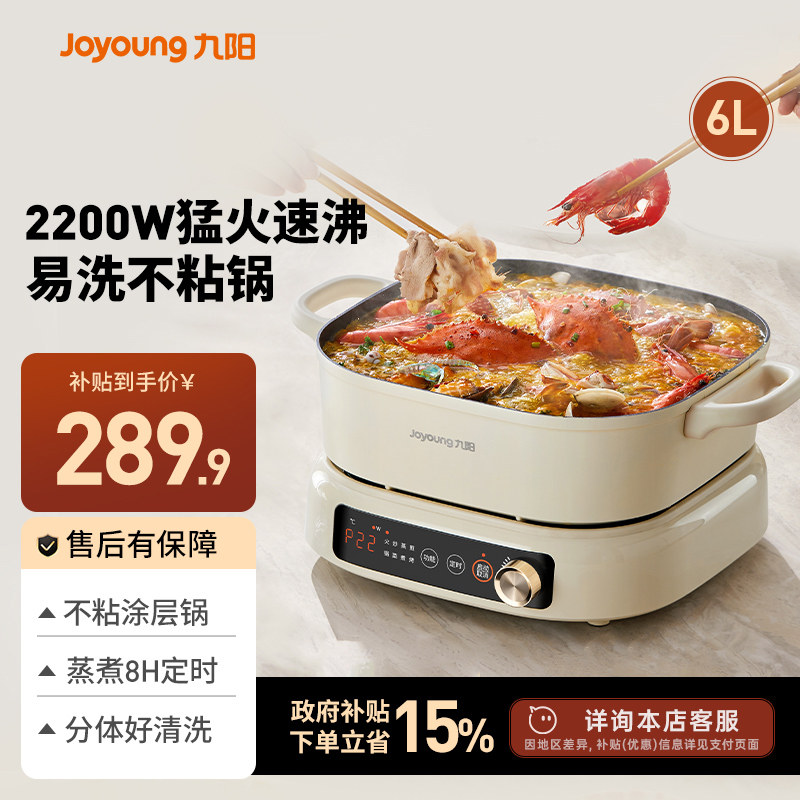 厨房电器 九阳电火锅锅家用小型煮锅小容量蒸煮一体不粘多功能煮泡面锅蒸锅