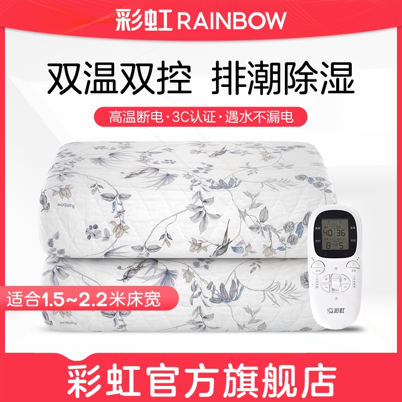 生活电器 彩虹电脑数码双温双控特宽幅电热厚遇水不漏电毯双人棉质加大