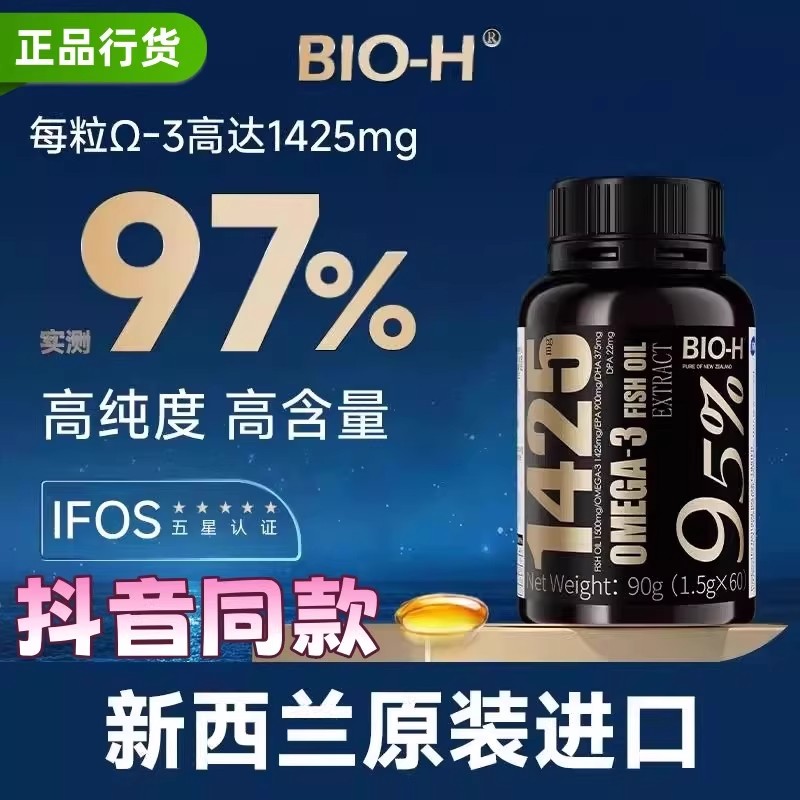 保健食品/膳食营养补充食品 新西兰BIOH佰澳和黑瓶95%高纯度深海鱼油补脑成人EPA学生DHA补钙