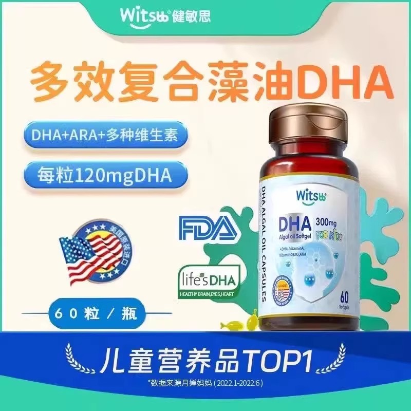 保健食品/膳食营养补充食品 witsbb健敏思多效藻油dha敏宝专研婴幼儿DHA儿童海藻油非鱼油60粒