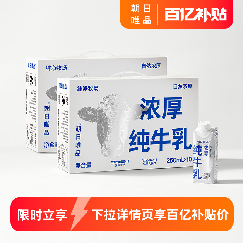 咖啡/麦片/冲饮 【百亿补贴】朝日唯品原生牛乳梦幻盖常温纯牛奶250ml*10盒*2箱装