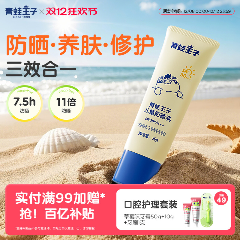 婴童洗护 【百亿补贴】青蛙王子儿童防晒霜宝宝学生军训隔离紫外线全家可用