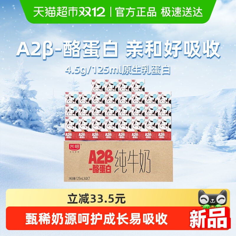 咖啡/麦片/冲饮 光明A2β-酪蛋白纯牛奶125ml*4盒*7组儿童牛奶学生奶整箱