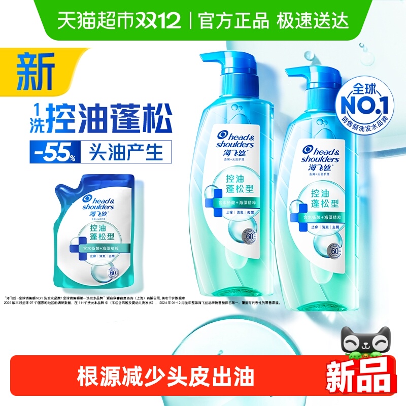美发护发/假发 【王鹤棣同款】海飞丝洗发水露控油蓬松头皮护理去屑柔顺洗头膏