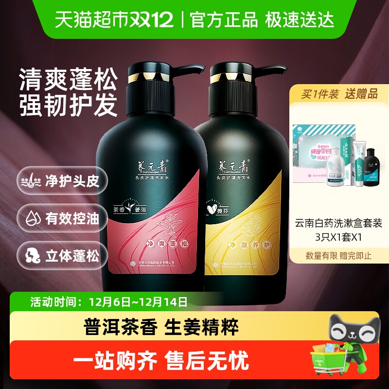 美发护发/假发 云南白药养元青洗发水套装止痒去屑柔顺蓬松生姜无硅油男女