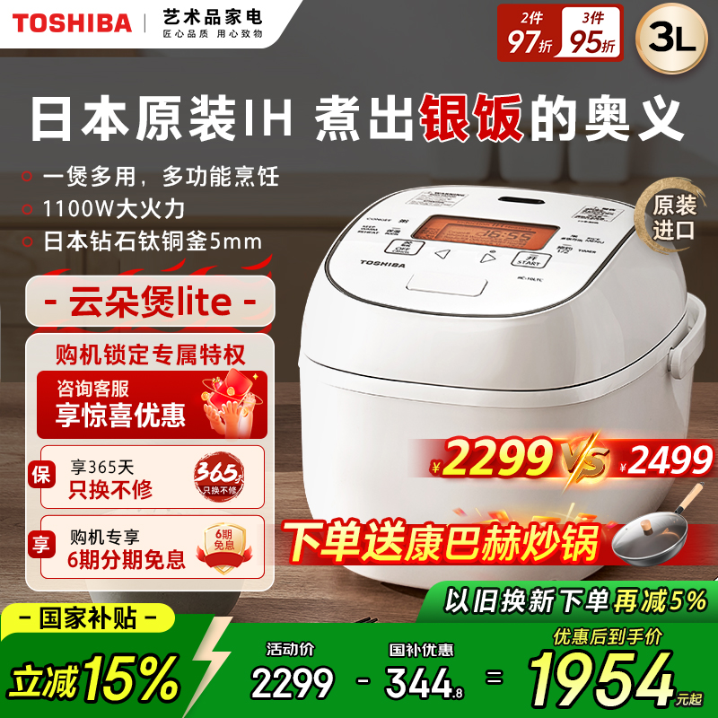 厨房电器 日本原装进口东芝云朵煲lite 家用多功能定时IH电饭煲3L RC-10LTC