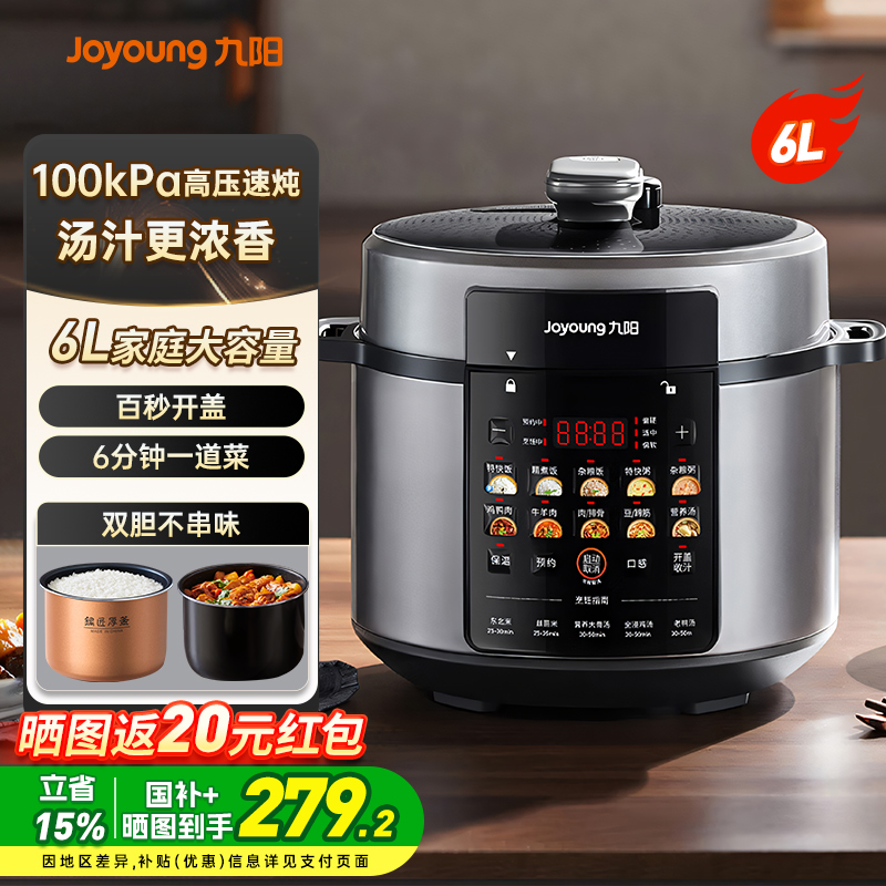 厨房电器 九阳电压力锅家用双胆大容量电饭煲2025新款电压力锅官方正品新款