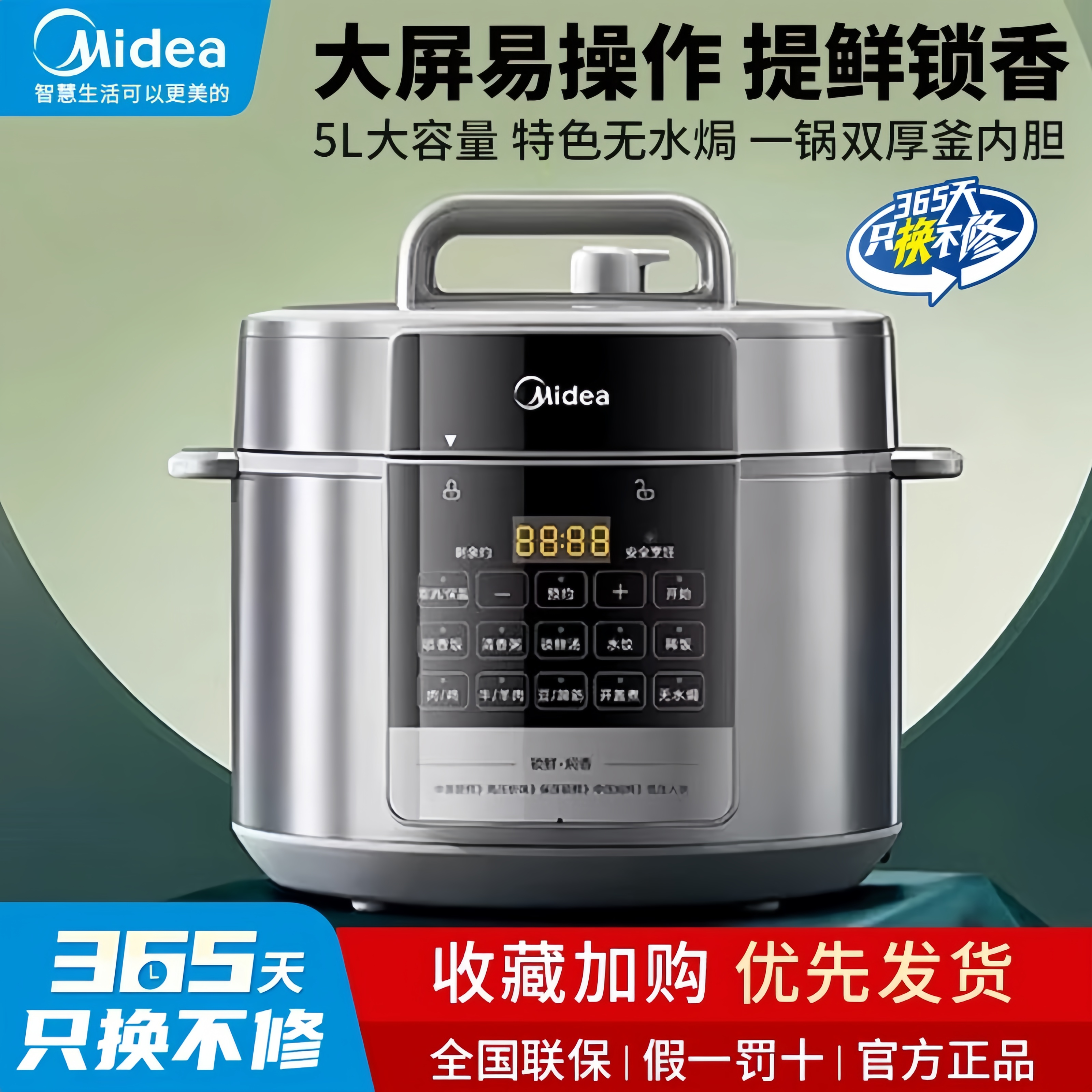 厨房电器 美的电压力锅家用厨房大容量5L全自动智能预约高压锅多功能煮饭锅
