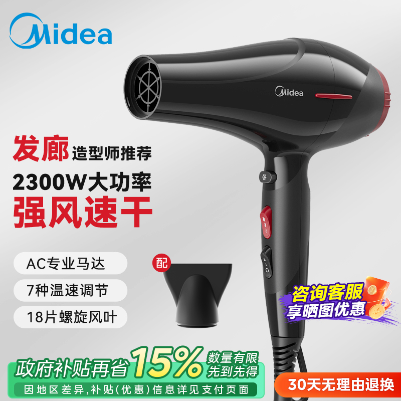 个人护理/保健/按摩器材 美的吹风机家用负离子护发音静速干大功率智能电吹风理发店专用25