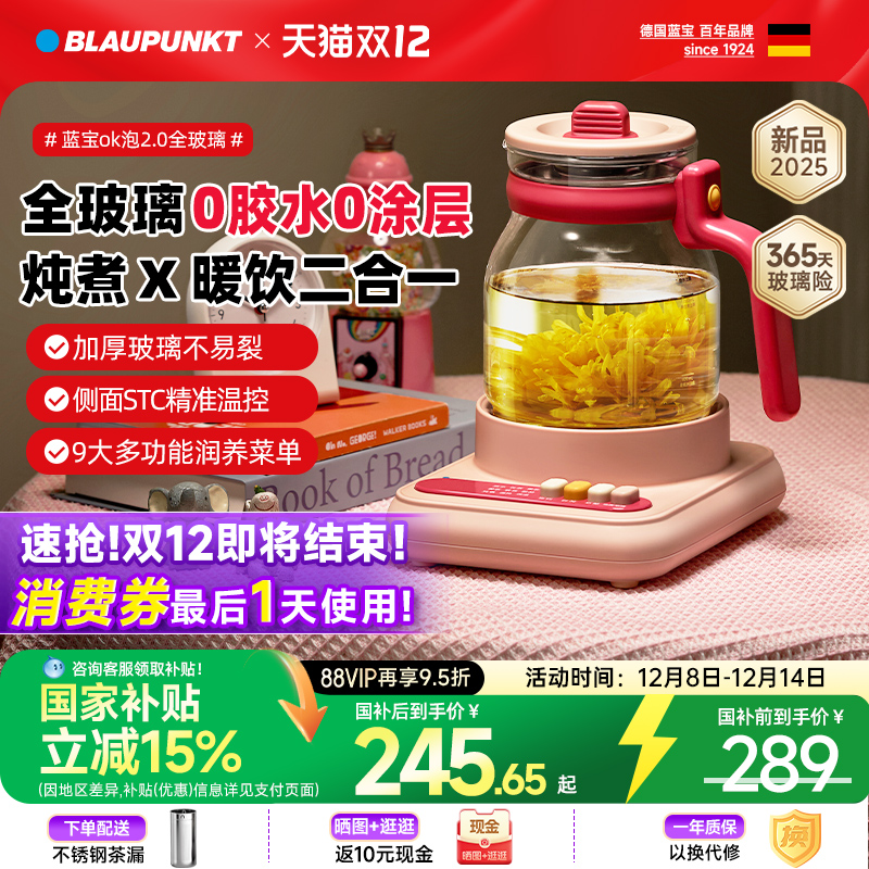 厨房电器 【政府补贴】蓝宝全玻璃养生壶办公室小型纯玻璃花茶壶家用烧水壶