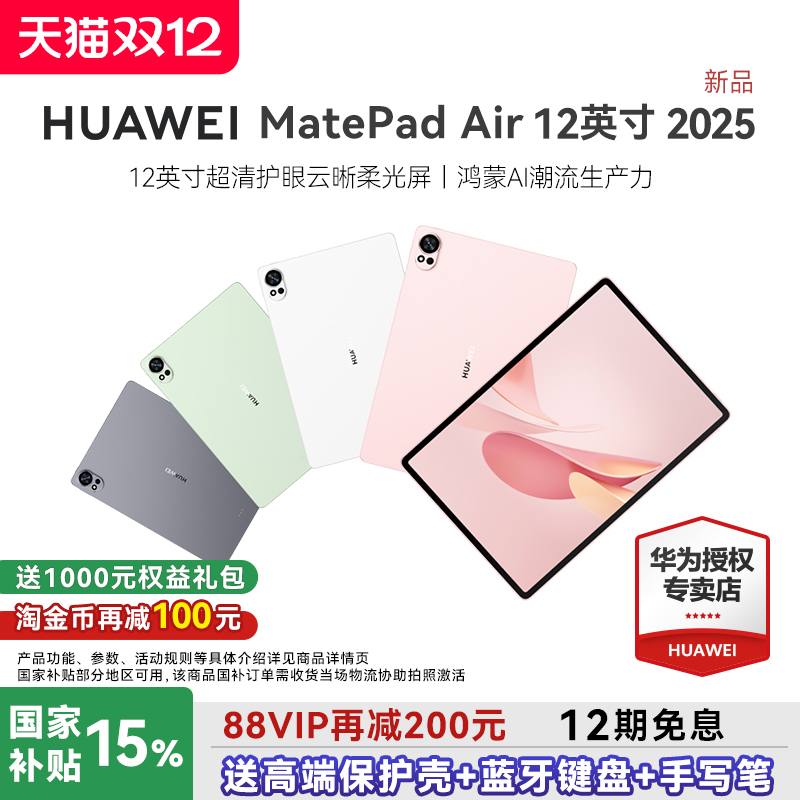 平板电脑/MID 【政府补贴15%】华为平板电脑MatePadAir12英寸2025新款大学生学习办公护眼matepad115s官方旗舰店柔光版鸿蒙