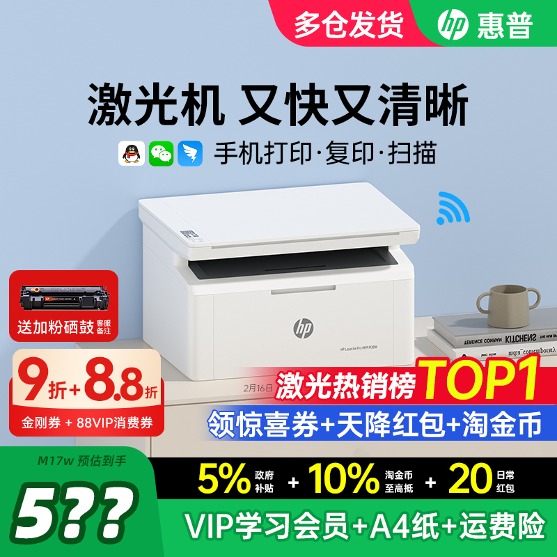办公设备/耗材/相关服务 HP惠普M30w黑白激光打印机复印扫描一体机家用小型M17w可连接手机无线家庭作业A4家庭办公专用多功能政府补贴
