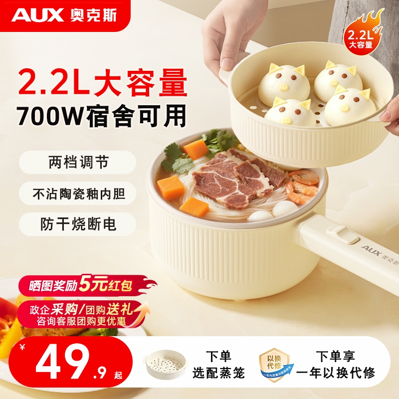 厨房电器 奥克斯电煮锅一体锅多功能小型2人宿舍泡面不沾小电锅蒸煮一体到3