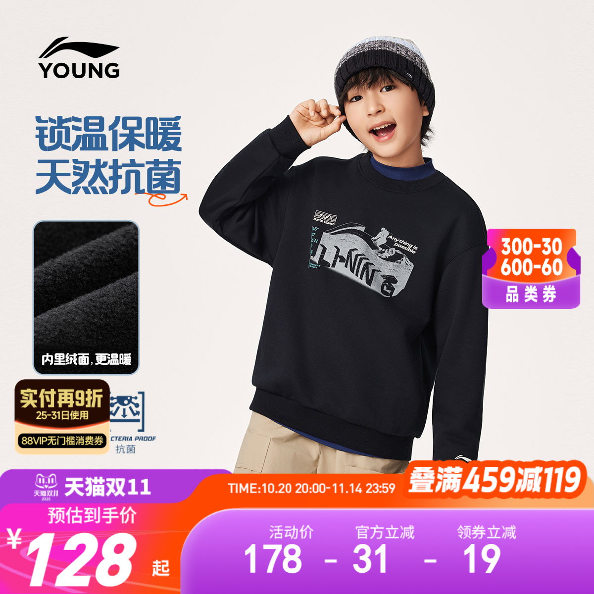 童装/婴儿装/亲子装 李宁儿童加绒卫衣男童秋冬2025新款大童青少年加厚保暖套头衫童装