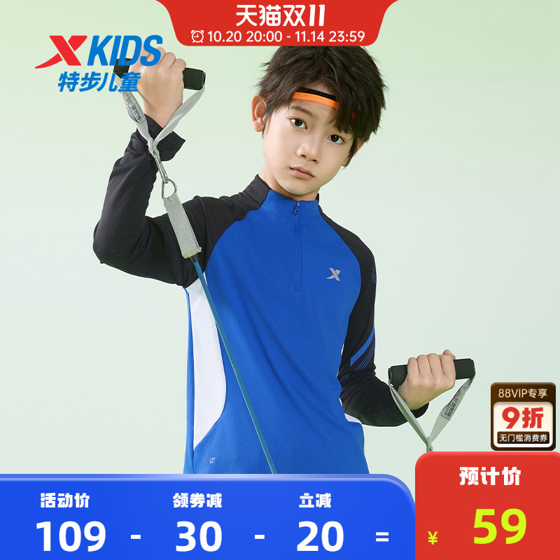 童装/婴儿装/亲子装 特步童装男童长袖T恤2025秋冬款儿童半开襟速干长t中大童运动上衣