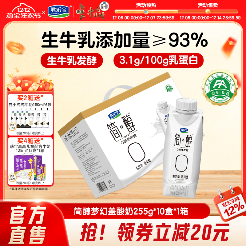 咖啡/麦片/冲饮 君乐宝高端简醇酸奶0添加蔗糖酸牛奶常温酸奶255g*10盒礼盒装
