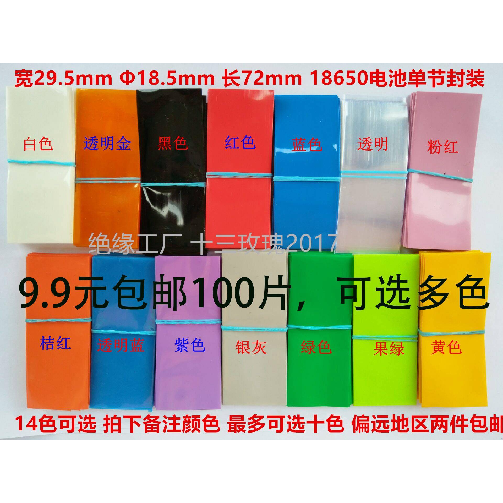 五金/工具 18650电池PVC热缩管热缩膜5号7号单节封装绝缘环保9.9元100片包邮
