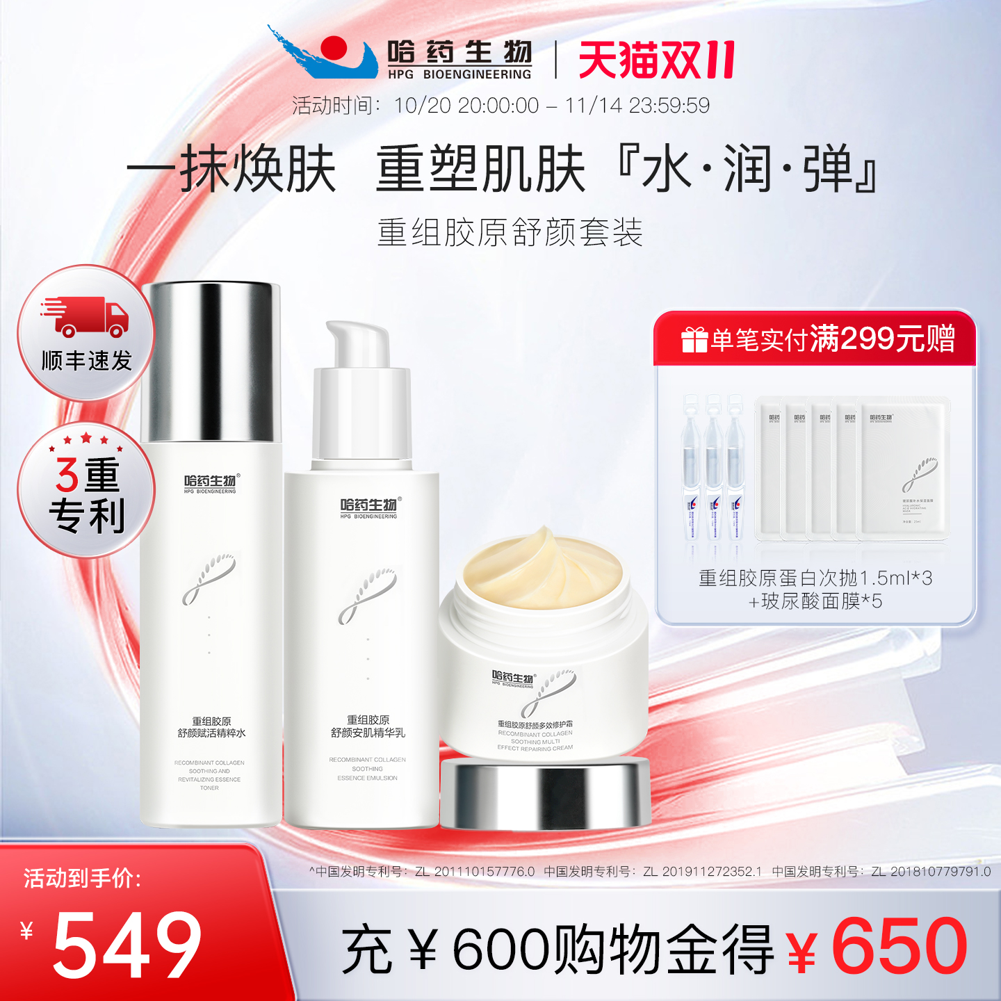 美容护肤/美体/精油 哈药生物重组胶原舒颜套装多效抗皱紧致补水保湿弹润水乳霜套装