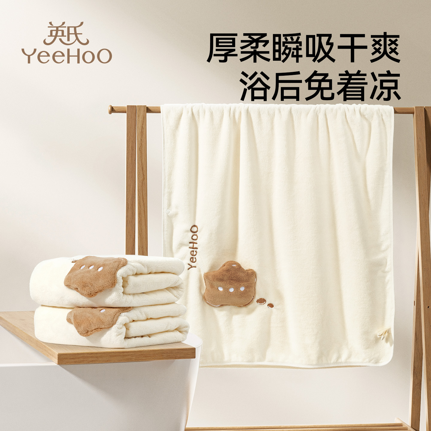 婴童用品 英氏婴儿浴巾A类纯棉宝宝新生儿童浴巾超软吸水带帽斗篷秋冬浴袍