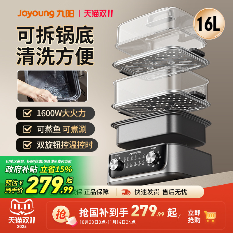 厨房电器 九阳电蒸锅家用2024新款多功能多层大容量蒸煮一体锅可拆官方正品