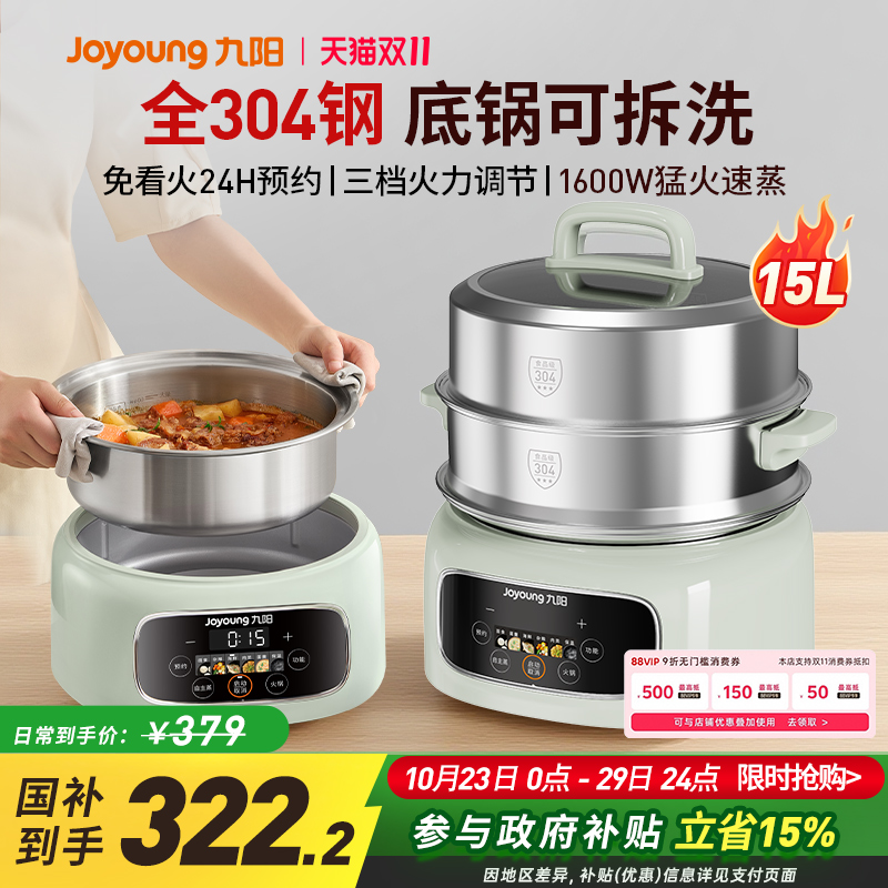 厨房电器 九阳电蒸锅新款不锈钢家用电蒸锅多功能蒸煮一体大容量烹饪机蒸箱