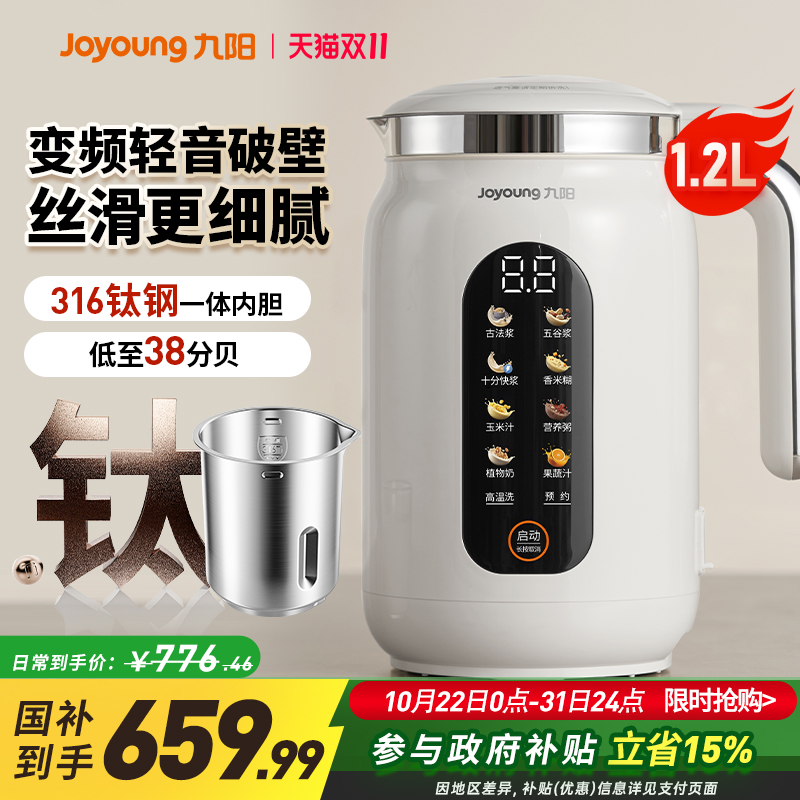 厨房电器 九阳破壁机家用可磨粉打干磨加热干湿两用多功能大容量豆浆料理机