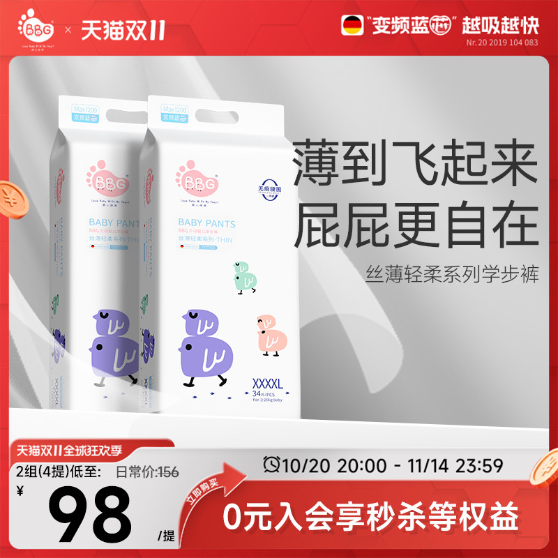 婴童尿裤 BBG丝薄轻柔拉拉裤超薄透气干爽婴儿学步裤母婴尿不湿LXL2XL大码
