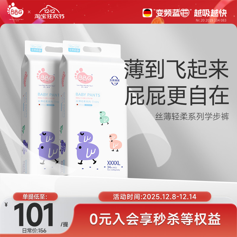 婴童尿裤 2提/BBG 丝薄轻柔拉拉裤学步裤婴儿尿不湿宝宝专用LXL2XL3XL大码