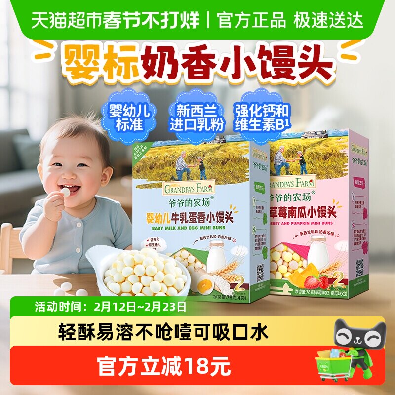 婴童食品 爷爷的农场儿童零食奶香牛乳小馒头夹心米饼磨牙饼干宝宝零食