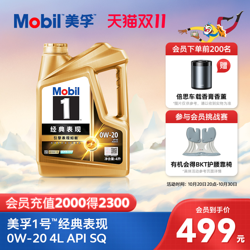 汽车零部件/养护/美容/维保 官方旗舰正品Mobil美孚1号经典表现0W-20 4L SQ先进全合成机油