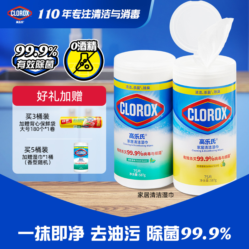 洗护清洁剂/卫生巾/纸/香薰 【达人推荐】高乐氏桶装湿巾季铵盐0酒精消毒湿纸巾除菌厨房湿巾