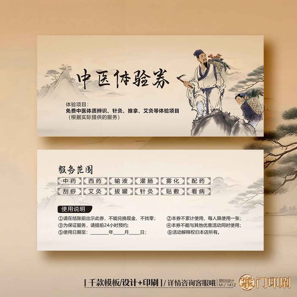 文具电教/文化用品/商务用品 中医券中医院中医诊所体验卡券代金券优惠券定制印刷