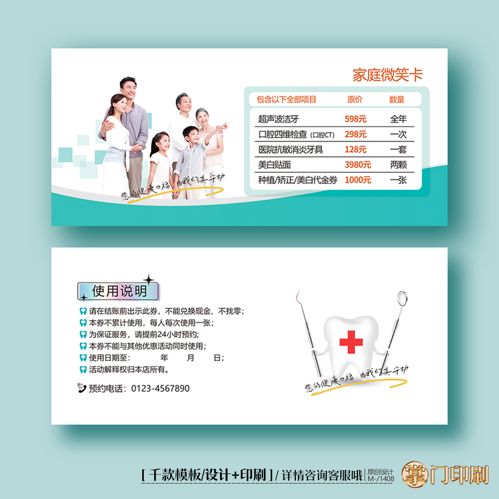 文具电教/文化用品/商务用品 家庭口腔卡口腔家庭卡口腔券代金券优惠券定制印刷