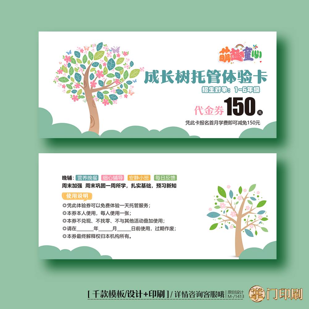文具电教/文化用品/商务用品 教育小树辅导班托管班招生体验卡券代金券优惠券定制印刷