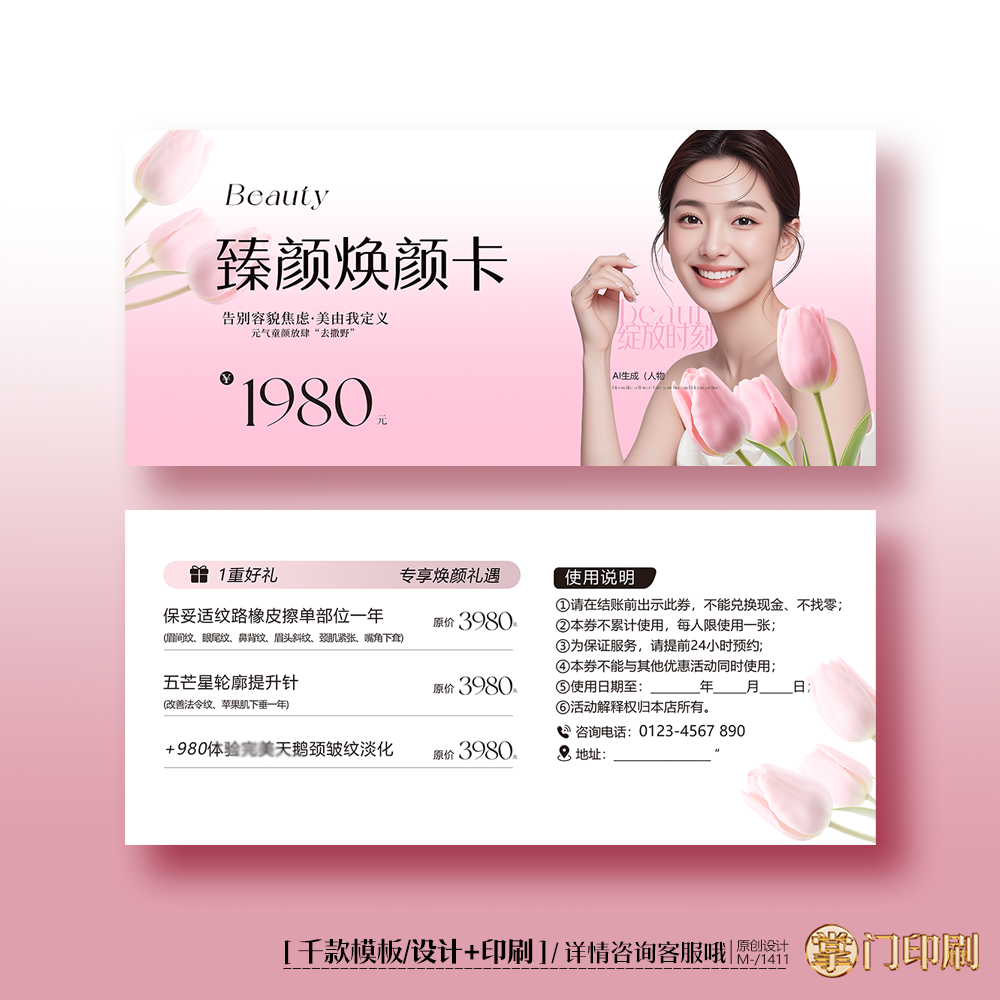 文具电教/文化用品/商务用品 04美业美容医美妇女节健康卡体验卡券代金券优惠券定制印刷